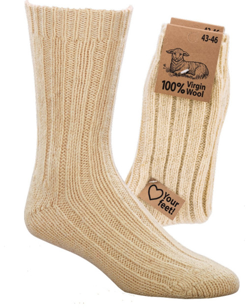 Eko nogavice 100% ovčja volna natur debelejše pletene nogavice za hladne dni.
